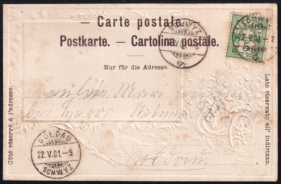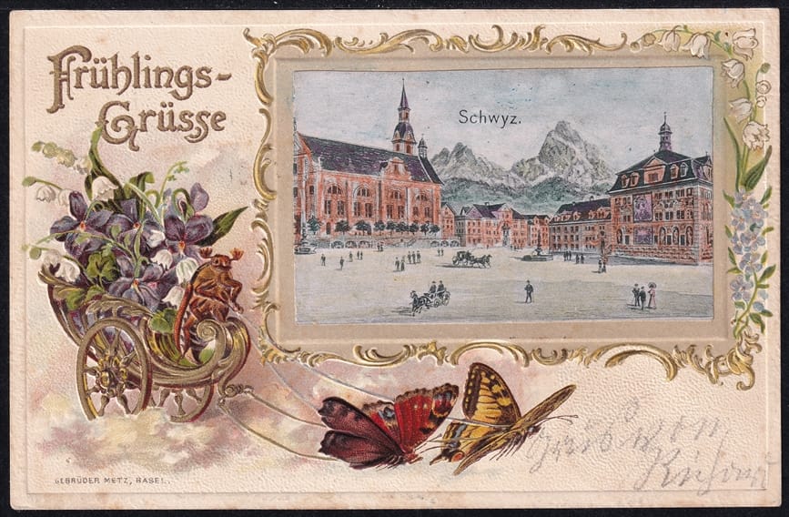 Farblitho, Prägedruck, etwas nachcoloriert