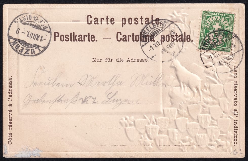 Farblitho, mit Kantonswappen und Prägedruck