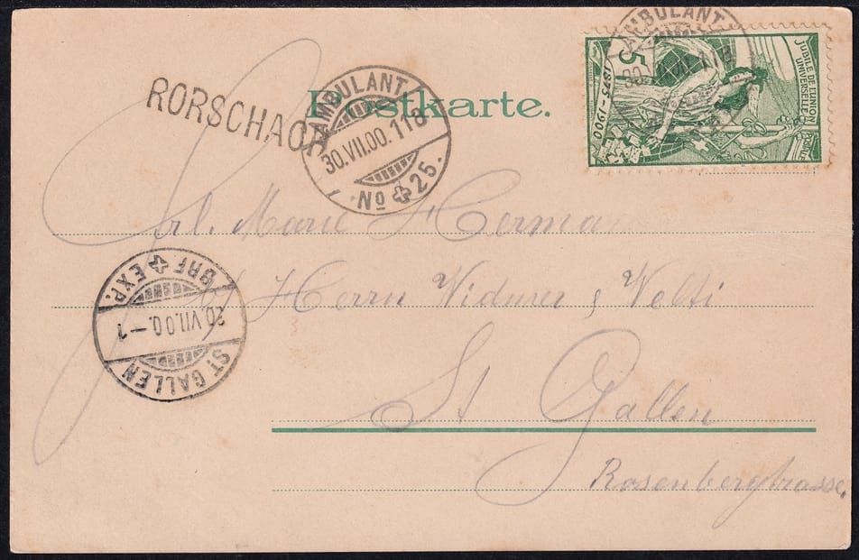Farblitho, gestempelt 1900, Bahnpoststempel