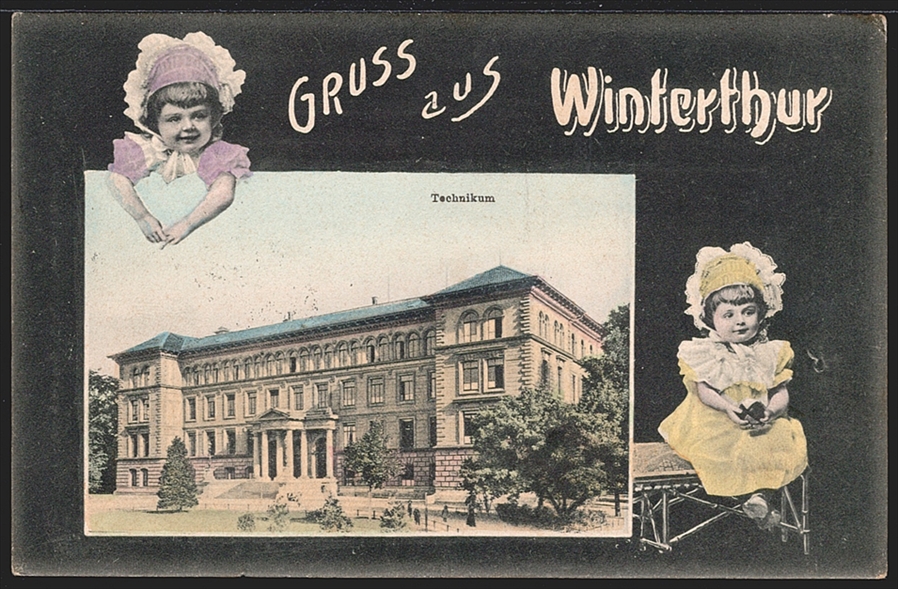 Lithokarten, WINTERTHUR Technikum, 1 Bild, col.Foto-AK, 1907