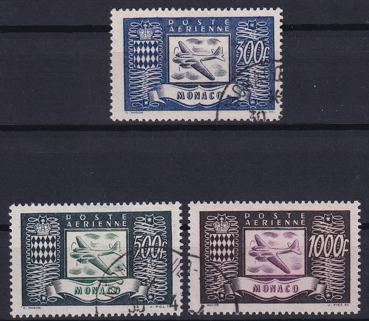 Monaco, Nr.394-396, Flugpost, komplette Serie, sauber gestempelt