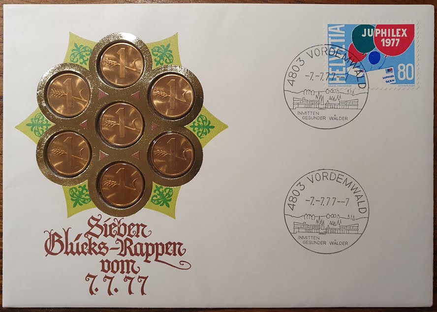 Münzbrief 1977 „Sieben Glücks-Rappen vom 7.7.77“ – FDC