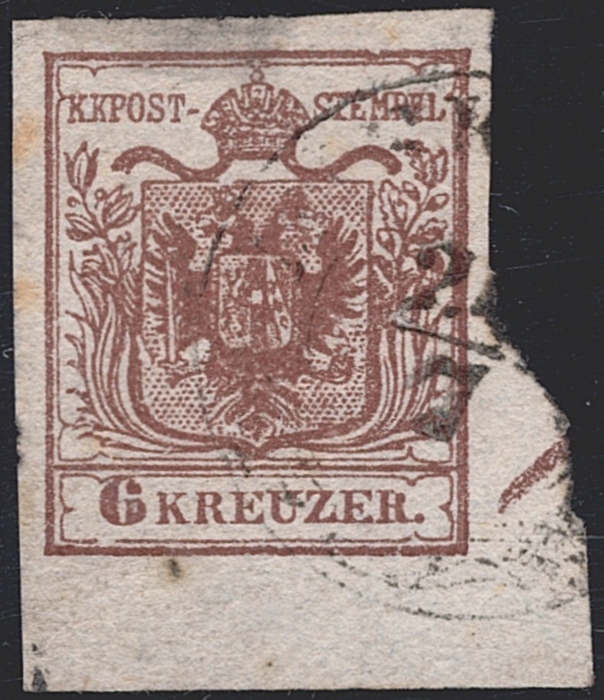 Österreich 1850 6 Kreuzer FB Nr. 4 „braun“ HP Type Ib mit Andreaskreuz Ansatz rechts gestempelt