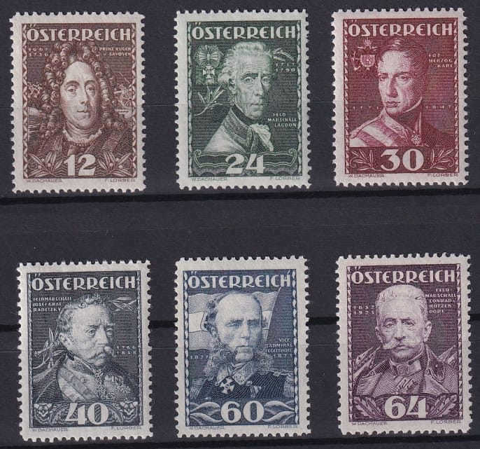 Österreich 1935 „Österreichische Heerführer“ ANK Nr. 617 bis 622 postfrisch **