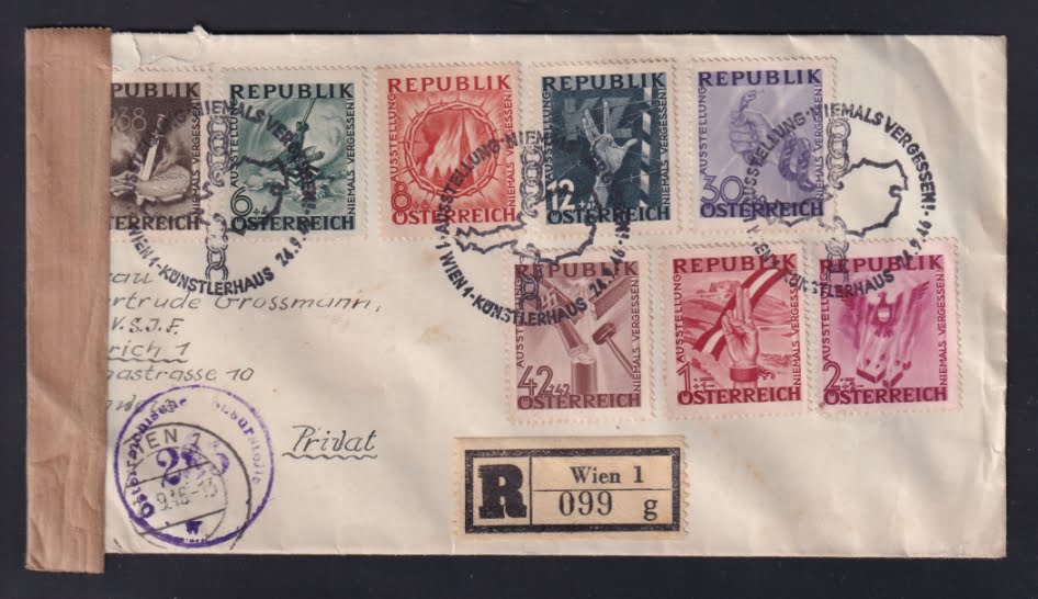 Oesterreich eingeschriebener, zensurierter Satzbrief Nr.784-791 mit Sonderstempel