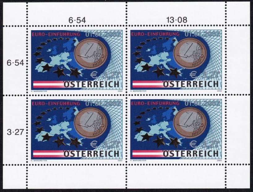 Österreich, Freimarken, Euro-Einführung, Kleinbogen