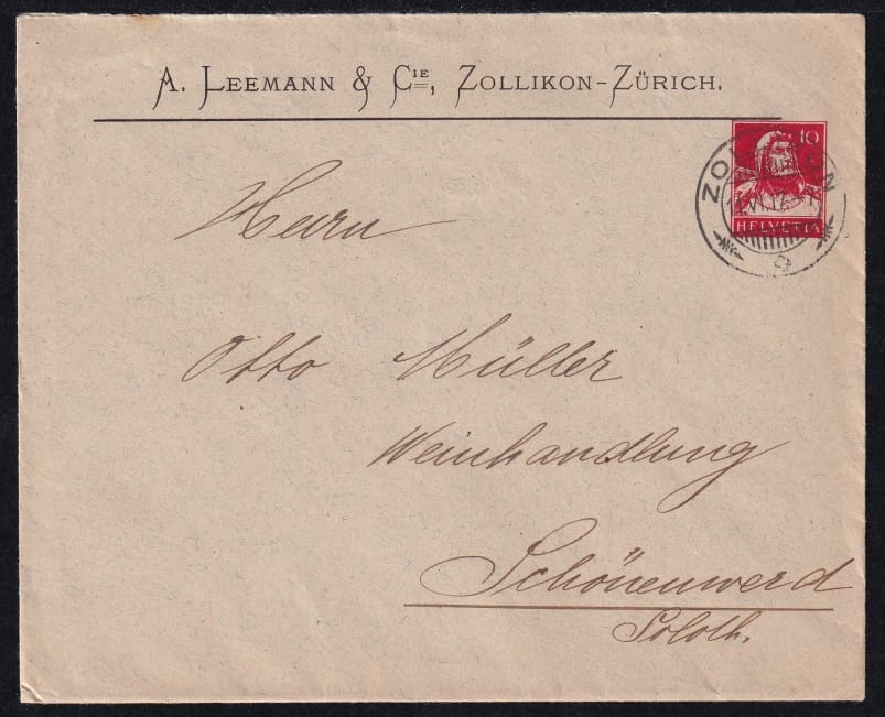 Schweiz 1914 Ganzsachen, Private Briefumschläge Firma „A. Leemann & Cie.“