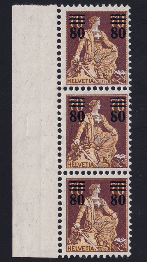 Shop » Schweiz 1915 Aufbrauchsausgabe SBK Nr. 135 Dreierstreifen mit Pf. „offene 8“ postfrisch