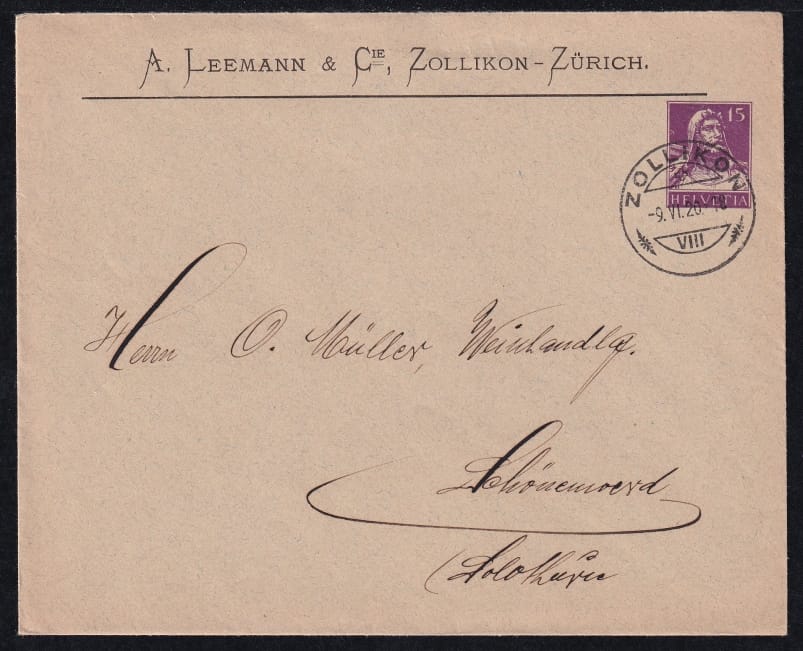 Schweiz 1920 Ganzsachen, Private Briefumschläge Firma „A. Leemann & Cie.“