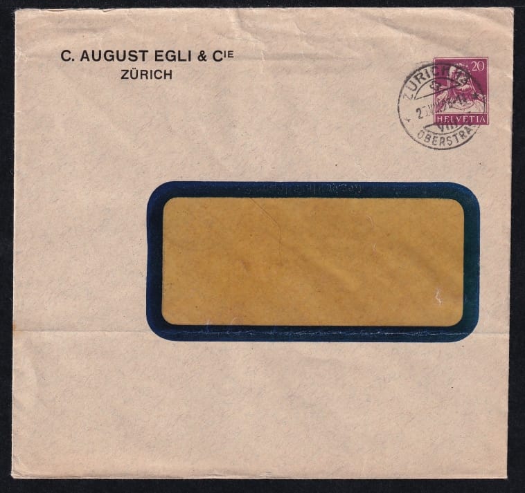 Schweiz 1923 Ganzsachen, Private Briefumschläge Firma „C. August Egli & Cie“