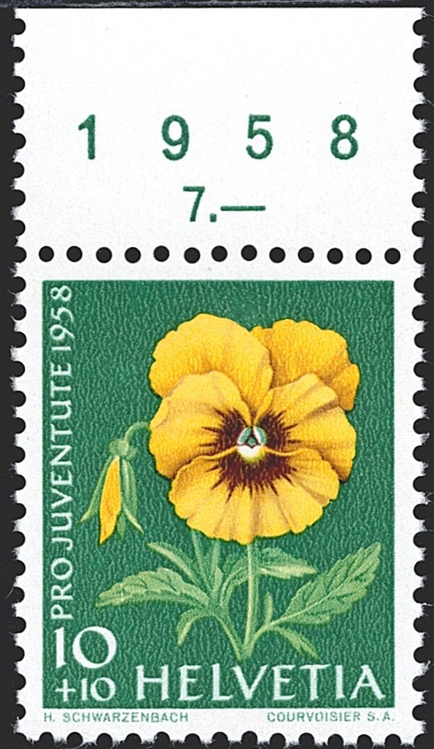 Shop » Schweiz, Abarten, Pro Juventute, Nr.174.3.01, Retouche zwischen Blüte und oberem Rand