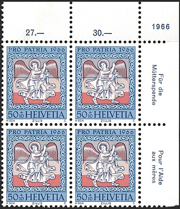 Shop » Schweiz, Abarten, Pro Patria, Nr.132.3.01, Retouche am Anstrich der 1 von 1966, Viererblock