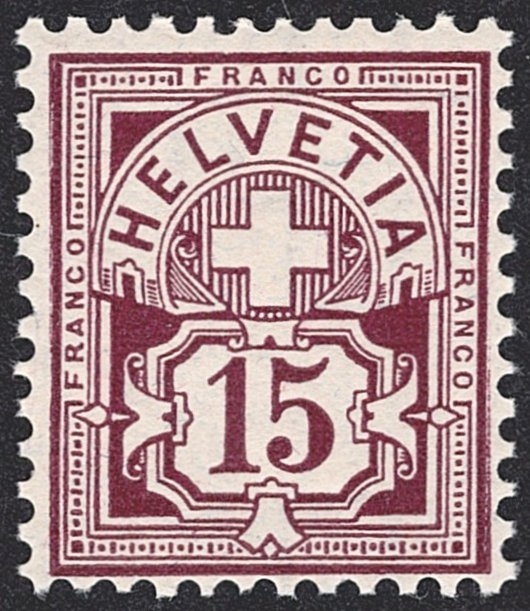 Schweiz, Altschweiz, Wertziffer, Nr.85, Wasserzeichen, 15Rp.braunlila