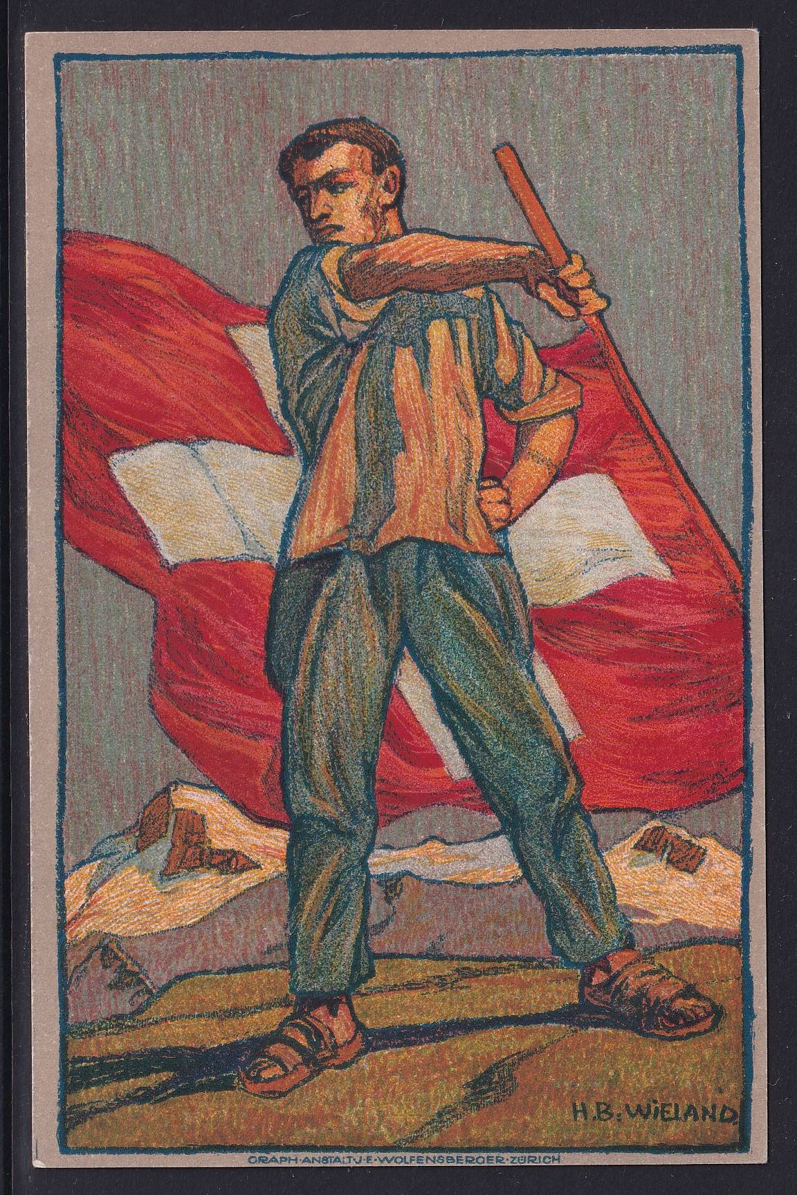 Bundesfeierkarte 1912 Nr. 3 „Fahnenschwinger“ ungebraucht