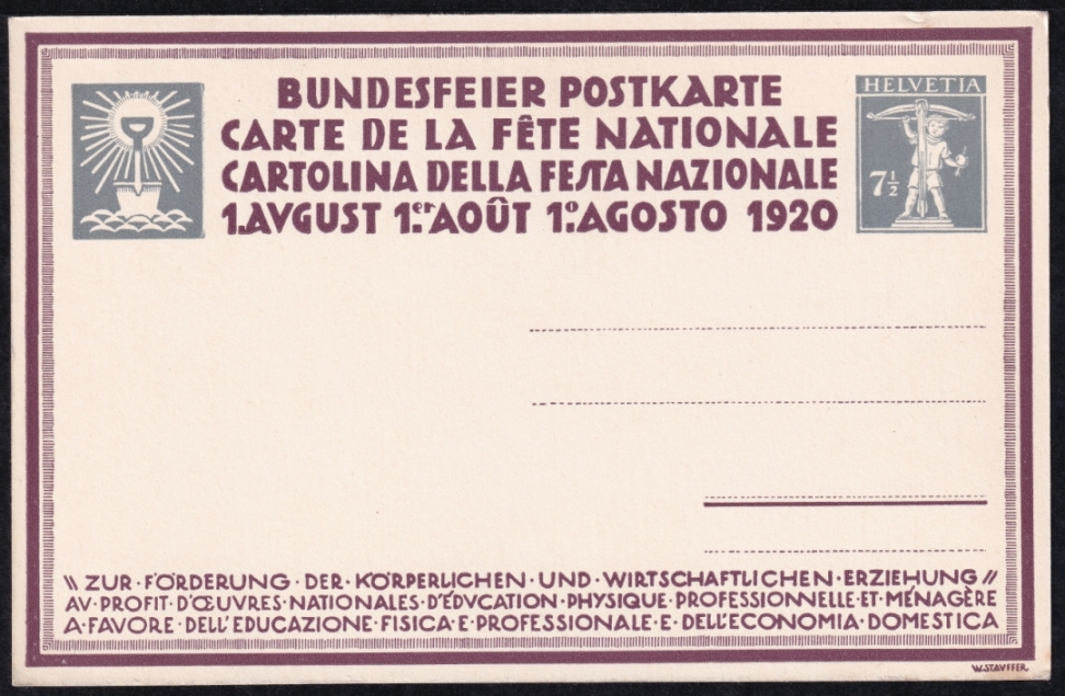 Schweiz Bundesfeierkarten 1920, Die Ernte 7 1/2 Rp., nicht gelaufen