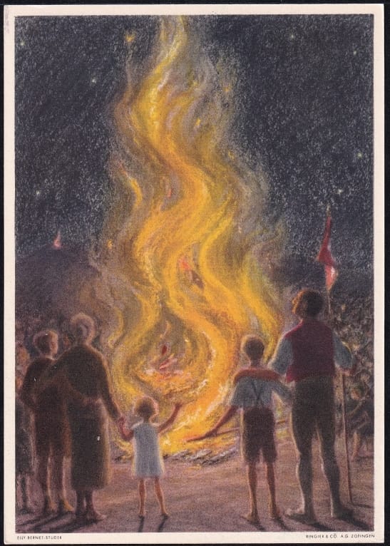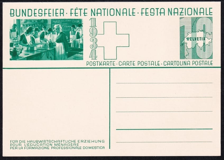 Schweiz Bundesfeierkarten 1934 Augustfeuer, Haushaltungsschule 10 Rp., nicht gelaufen