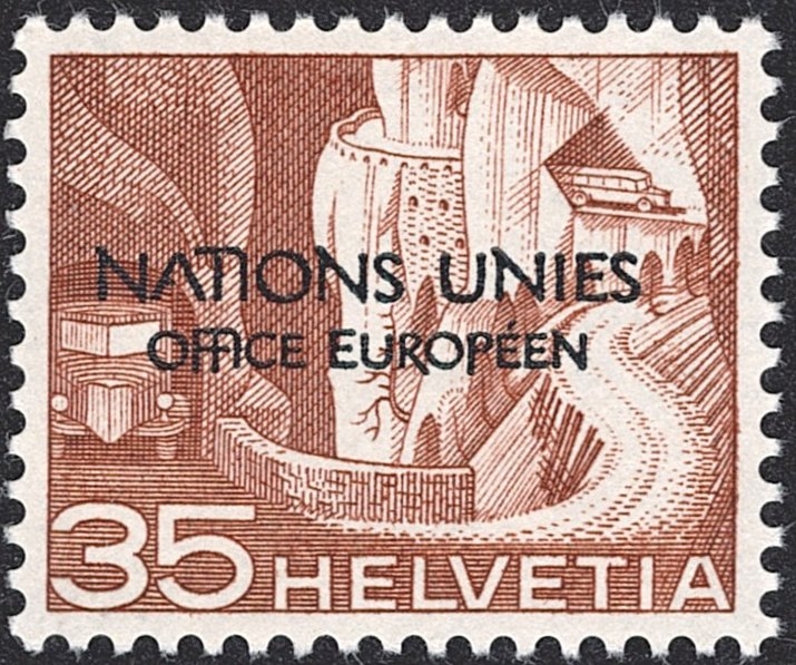 Shop » Schweiz, Dienstmarken, DVII, OFFICE EUROPEEN, Nr.7.Ab.3, 35Rp., defektes A in NATIONS