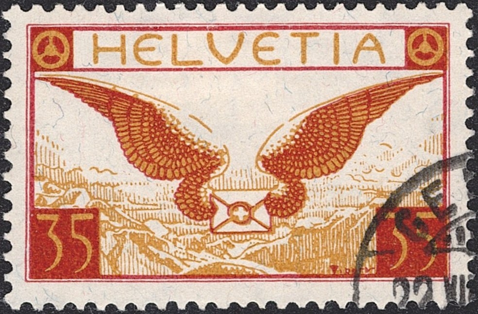 Schweiz, Flugpost, Nr.14, Flügel, Eckstempel