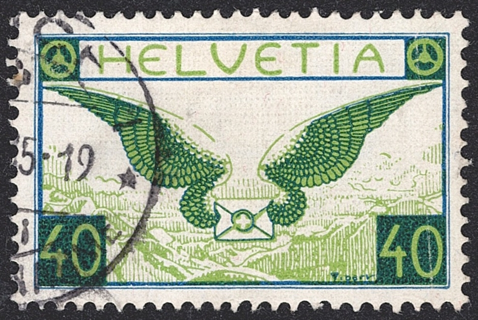 Schweiz, Flugpost, Nr.15z, geriffeltes Papier, Brieftaube, gestempelt