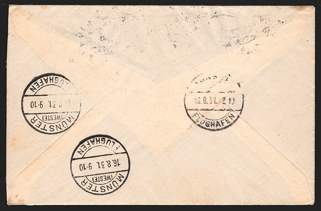 Schweiz, Flugpost, Zeppelinpost, 1931, Münsterfahrt, ZF 156A, hochwertige Frankatur, 2 kleine Fettflecken