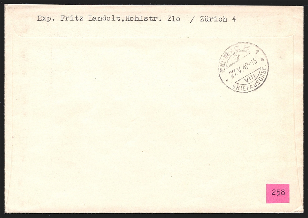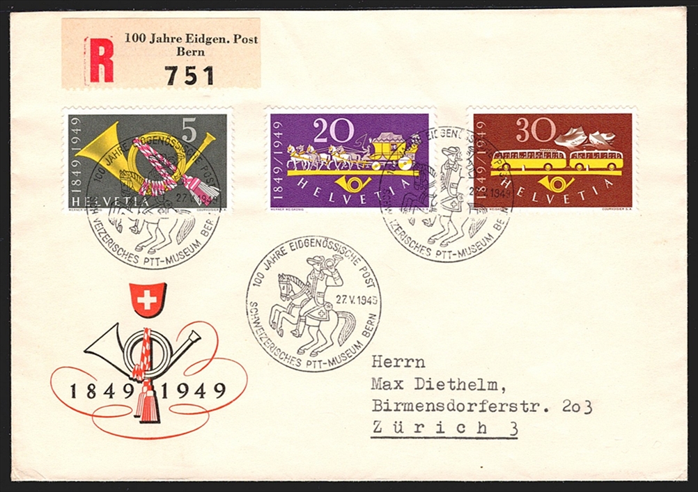 Schweiz Freimarken, 1949, Nr.291-293, Sondermarken, R-Brief mit passendem Sonderstempel