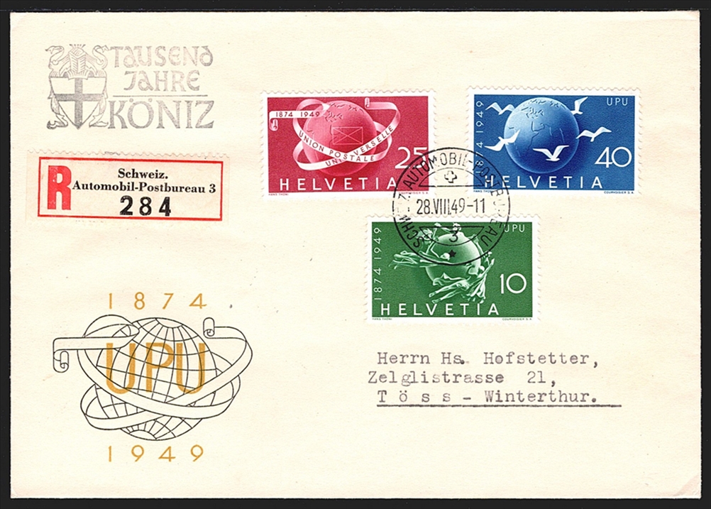 Schweiz Freimarken, 1949, Nr.294-296, Sondermarken, R-Brief mit Sonderstempel