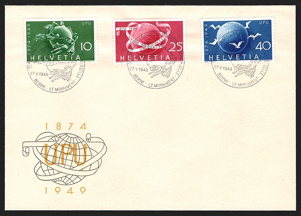 Schweiz Freimarken, 1949, Nr.294-296, Sondermarken, unadressierter Umschlag mit passendem Sonderstempel