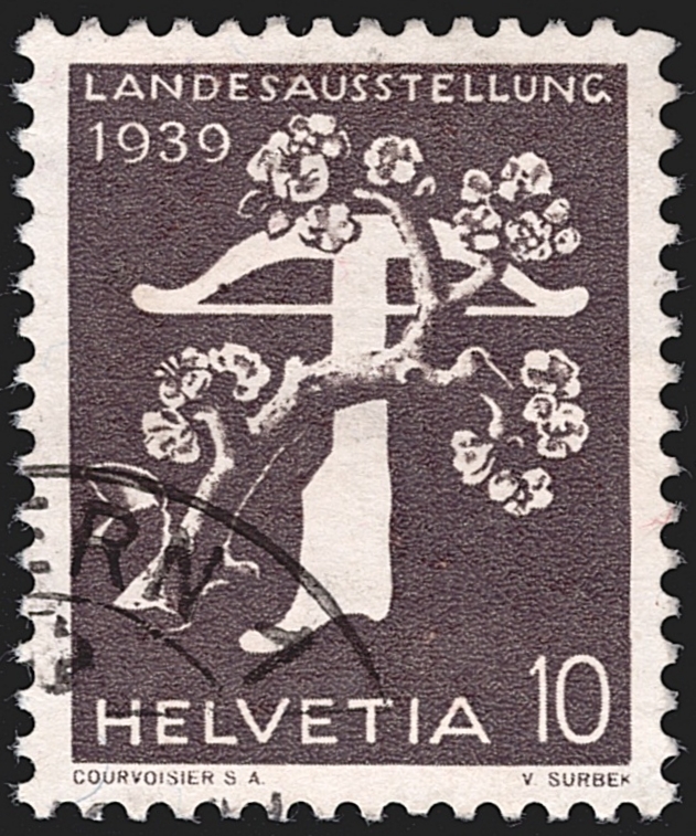 Schweiz, Freimarken, Landesausstellung Zürich 1939, Nr.229yRM, 10Rp. braungrau, Rollenmarke mit Nr.O 6820, sauber gestempelt