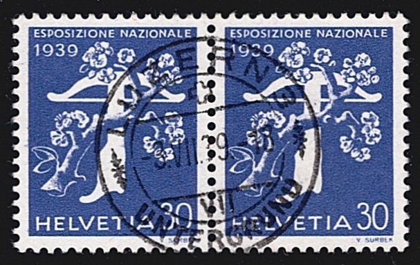 Schweiz, Freimarken, Landesausstellung Zürich 1939, Nr.239, 30Rp. blau, waagrechtes Paar, sauber gestempelt LUZERN