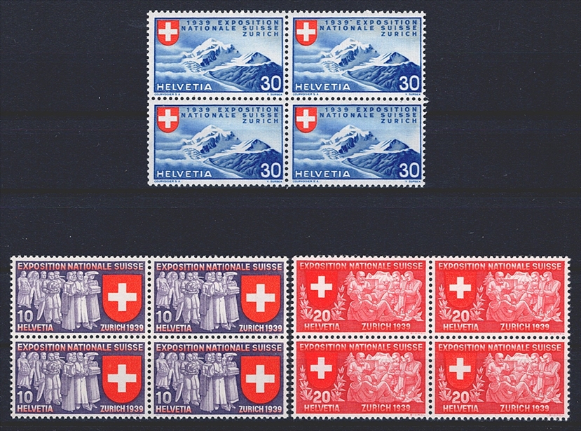 Schweiz, Freimarken, Landi französisch, Nr.222-224, im Viererblock