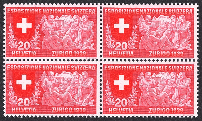 Schweiz, Freimarken, Landi italienisch, Nr.226, 20Rp. karmin/zinnober, im Viererblock