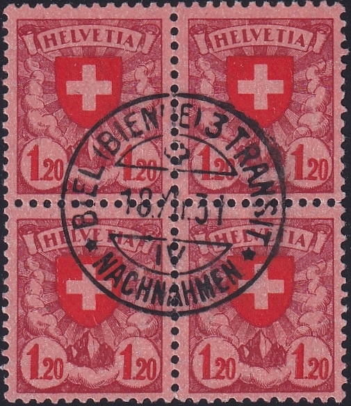 Schweiz, Freimarken, Nr.164, im Viererblock, sauber gestempelt BIEL