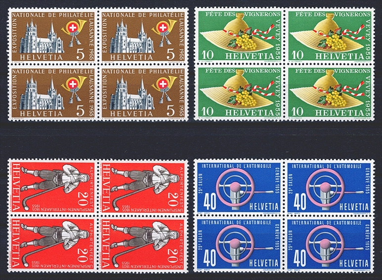 Schweiz, Freimarken, Sondermarken, komplette Serie, Nr.320-323, im Viererblock