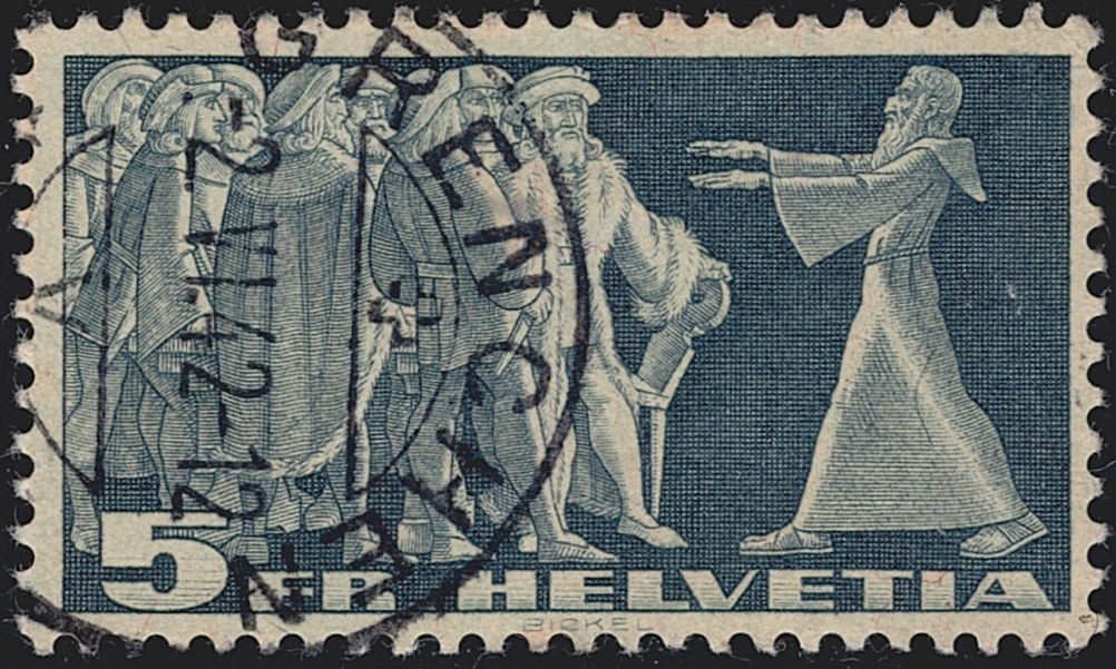 Schweiz, Freimarken, Symbolische Darstellungen, 1938, Nr.217v, 5Fr. lichtempfindliches Papier, sauber gestempelt GRENCHEN