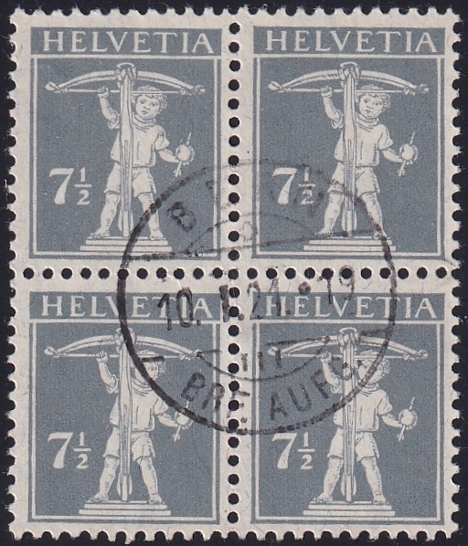 Schweiz, Freimarken, Tellknabe, Nr.138II, im Viererblocksauber gestempelt BERN