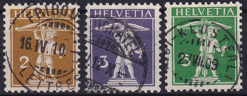 Schweiz, Freimarken, Tellknabe, Sehne vor dem Schaft, Nr.117-119, komplette Serie, sauber gestempelt