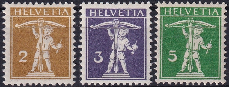 Schweiz, Freimarken, Tellknabe, Sehne vor dem Schaft, Nr.117-119, komplette Serie