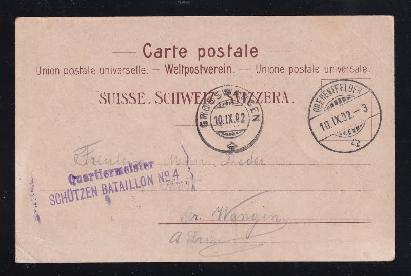 gestempelt Quartiermeister SCHÜTZENBATAILLON No.4, in violett