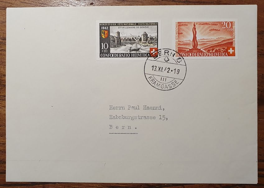 Schweiz Pro Patria 1942 Block 7 Einzelwerte auf Brief
