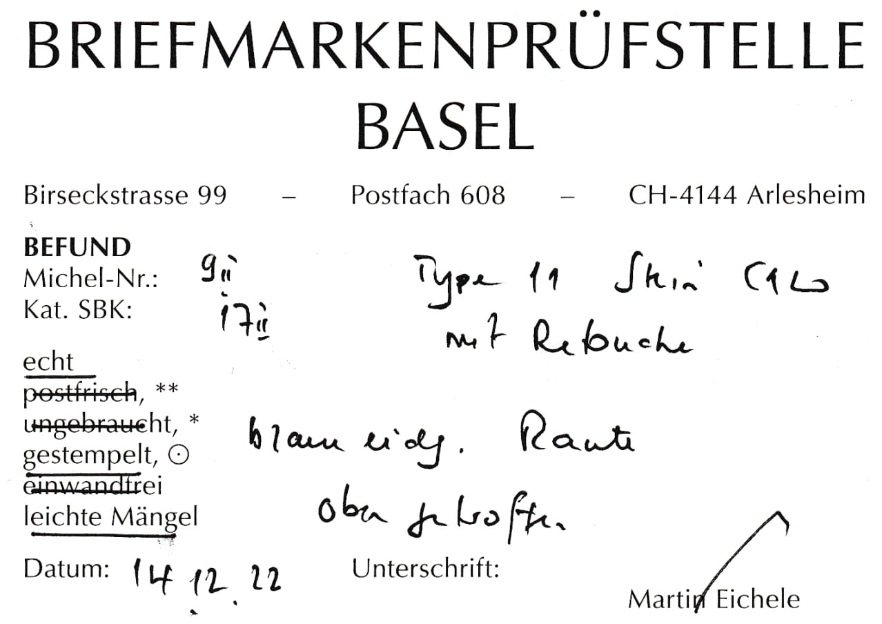 SBK Nr. 17 II mit Retouche Type 11 C1-LO blaue eidg. Raute Nr. 83