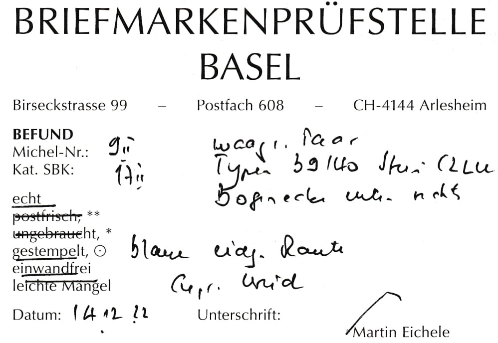 SBK Nr. 17 II im Paar Typen 39+40 C2-LU gestempelt mit blauer eidg. Raute, vollrandig mit Bogenecke