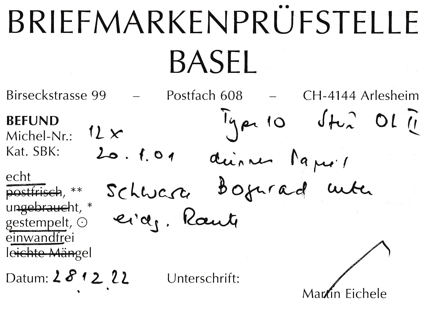 Katalogwert CHF 200.- + CHF 200.- (für 1.01)