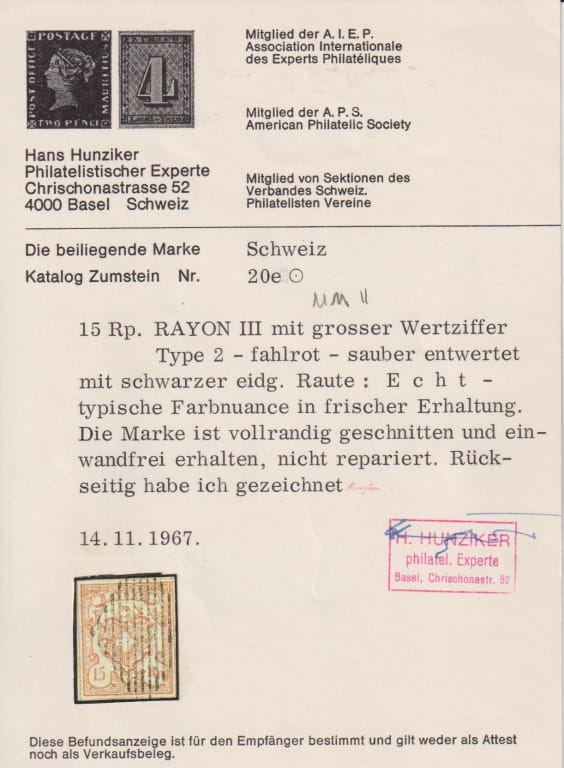 farbfrische,voll/breitrandige Marke. Att. Hunziker