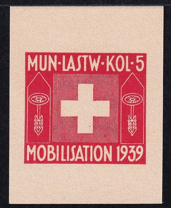 Schweiz Soldatenmarken 1939, Transportdienst, MUN-LASTW-KOL-5, dünnes Chamoispapier