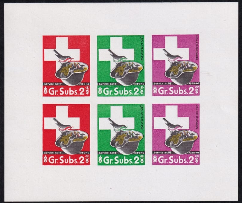 Schweiz Soldatenmarken 1939, Verpflegung, Gr. Subs.2, ungezähntes Sechserbögli