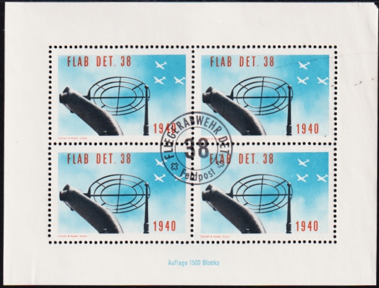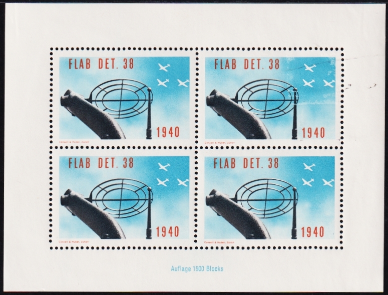 Schweiz, Soldatenmarken, Fliegerabwehr, Flab Det.38, Nr.66, gezähnter Block, je postfrisch und mit passendem Truppenstempel