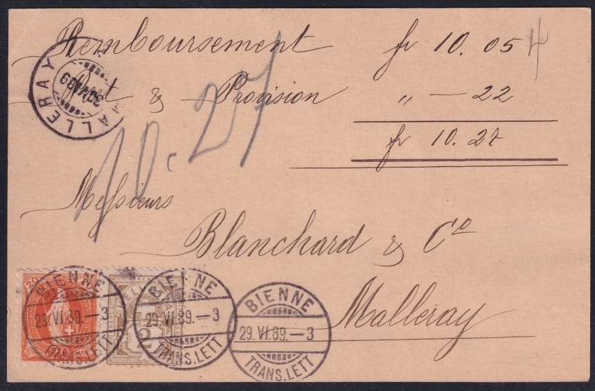 Schweiz Stehende Helvetia, Nr.66B,58A, saubere Nachnahme, BIENNE
