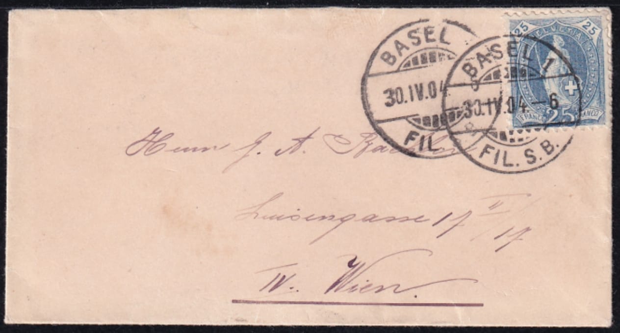 Schweiz Stehende Helvetia Nr.73E auf kleinformatigem Brief nach WIEN