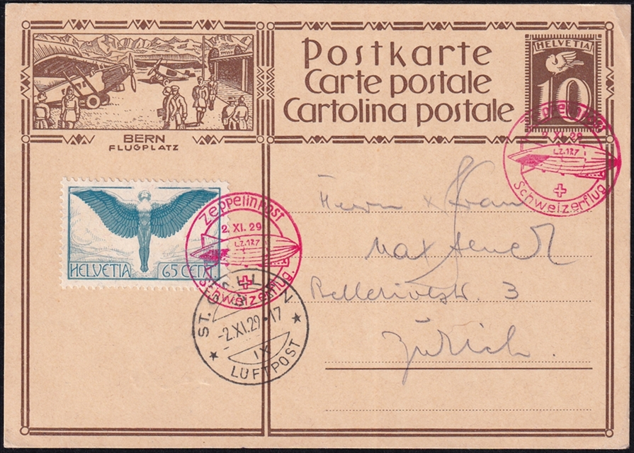 Schweiz, Zeppelinflüge, 1929, Sonderabfertigung Dübendorf-St.Gallen, ZF18D, Bildpostkarte