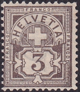 Schweiz, Ziffermuster, Nr.59A, 3Rp. grau